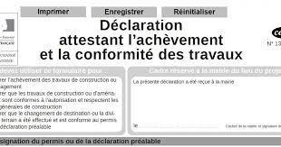 La déclaration d’achèvement se fait au moyen d’un formulaire. Il est disponible, comme ses compléments, en ligne sur le site du service public.